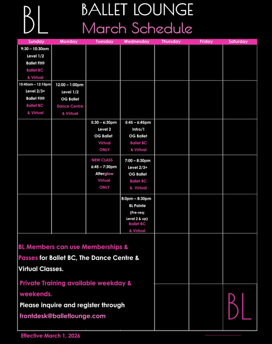 If you experience any booking issues, plese email frontdesk@balletlounge.com